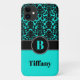 Monogram Aqua, Noir, Blanc Damask iPhone 11 Coque