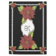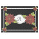 Cette jolie nappe de vacances dispose d'un arrière - plan noir que vous pouvez changer à n'importe quelle couleur que vous voulez facilement avant de commander! Agréable à table toute la saison, le centre a deux belles poinsettias rouges et un cadre de bannière blanche que vous pouvez facilement customiser avec votre initiale monogramme. Il y a des garnitures blanches sur les quatre bords avec un petit poinsettia à chaque coin.