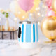 Monogram in white against black and gray. Summer ocean vibes pastel blue and sky blue and white vertical cabana stripes. Designs by TamiraZDesigns.