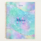 Personnalisez votre monogramme rose 3D, nom de script bleu foncé et année sur étincelant et glam Iridescente arrière - plan de turquoise et violet. Cliquez sur "Edit Using Design Tool" pour modifier les couleurs et les styles de type.