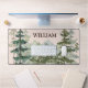 Élevez votre espace de travail ! Monogram Watercolor Pine Forest & Mountain Rustic Desk Mat, personnalisée avec votre nom. Productivité inspirée de la nature