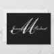 Ce design tout simplement élégant appelé Monogramme Argent sur Noir avec Mariage Pois, a un arrière - plan noir sur le devant avec votre monogramme en argent ou gris et vos prénoms en blanc à travers le centre. Votre texte personnalisable se trouve à l'arrière avec une bordure en pois noir arrière - plan et blanc. Cet ensemble contient des invitations, des cartes de dates, des cartes de réponse, des cartes de remerciement, des cartes de tentes de numéro de table, des scellés d'enveloppe, des étiquettes de vin, des classeurs, des étiquettes d'adresse de retour et bien d'autres articles de papeterie, faveurs et cadeaux disponibles pour la journée de mariage. Utilisez les autocollants de scellés d'enveloppe pour n'importe lequel de vos cadeaux DO-IT-YOURSELF - ils sont disponibles en grandes et petites tailles! Tous les éléments sont imprimés sur nos produits de haute qualité, ils n'incluent pas d'or, de bijoux, de gaufrage ou d'autres éléments textiles. Tous les dessins sont des droits d'auteur Noteable Expressions, Inc. Tous droits réservés.