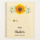 Couleur arrière - plan jaune doux. Décoré d'un grand tournesol aquarellé et d'une abeille joliment souriante et mignonne qui livre une enveloppe. Personnalisez et ajoutez un nom. Le nom est écrit en noir avec un grand script de style à la main moderne. Parfait pour l'école, le travail ou l'organisation de votre vie personnelle/familiale.