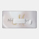 Personnalisez cet élégant monogramme d'or initial et de script noir sur un tapis de bureau d'arrière - plan de perle irisé.