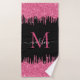 Jolie fille Monogramme Noir Métallic Hot Magenta Rose Parties scintillant à goutte Serviette de bain