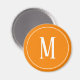 Un aimant rond avec un monogramme blanc sur un arrière - plan orange. Customisez l'aimant avec vos initiales ou initiales, couleurs, entre autres options.