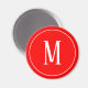 Un aimant rond avec un monogramme blanc sur un arrière - plan rouge. Customisez l'aimant avec vos initiales ou initiales, couleurs, entre autres options.