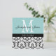 Monogramme de Damas bleu Faire-part de mariage. Art et design by Elke Clarke © 2010. Customisez avec vos noms, monogramme, date mariage et votre texte d'invitation des deux côtés de cette adorable invitation mariage damassé. Vous pouvez également changer la couleur arrière - plan et n'oubliez pas de tester différents choix de papier, chacun ajoutant son propre "look" en plus du design.