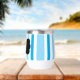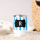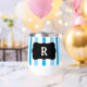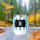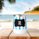 Monogramme blanc sur fond noir et gris. Vagues océaniques estivales, bleu pastel, bleu ciel et rayures verticales de cabane blanches. Créations de TamiraZDesigns.