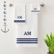 Bleu trois bandes et monogramme sur blanc. Élégante serviette moderne.