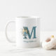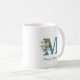 Cette tasse de café personnalisée est un cadeau idéal pour vos amis et les membres de votre famille. Il est conçu avec un design floral coloré et un monogramme. La tasse est ornée de fleurs bleues et jaunes, d'un monogramme et d'un nom, ce qui en fait une tasse parfaite pour les amateurs de café.