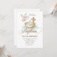 Cette invitation classique au baptême de style monogramme présente une couronne fleurie, une croix bleue et une disposition intemporelle. Idéal pour les cérémonies officielles de petit garçon.