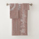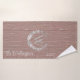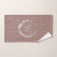 Sur ce set de serviettes tendance est un bois rustique mauve avec une lettre que vous pouvez customiser dans le centre joint avec une élégante couronne de laurier argenté pour pop supplémentaire puis en dessous c'est une zone où vous pouvez le customiser avec votre nom et date. Vibes rustiques et élégantes.