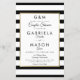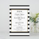 Avec un classique arrière - plan rayé noir et blanc, cette élégante invitation à la douche mariage budget a une fausse bordure en feuille d'or encadrant vos couples détails douche ensemble dans la typographie chic moderne et photo spéciale au verso. Conçu par Thisisnotme©