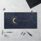 Tapis de bureau à thème céleste avec un arrière - plan bleu nuit et des détails dorés. Consultez notre magasin pour plus d'articles de cette collection.