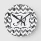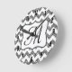 Parties scintillant d'argent moderne Chevron Zig Zag Tissu d'impression Motif Monogramme initial Horloge murale personnalisée