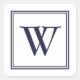 Monogramme de bloc classique avec autocollant de carré monogramme double bordure. Blanc avec bleu marine.