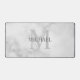 Monogramme personnalisé et cadeau de nom caractéristiques personnalisées nom en gris et monogramme en gris clair comme arrière - plan, dans le style de police serif classique, sur arrière - plan en marbre blanc.