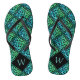 Une paire de tongs en monogramme noir avec un noeud Celtique bleu-vert répétée en mosaïque. Faites-le personnellement et de façon unique avec vos initiales!
