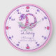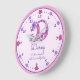 Monogramme lettre D coeurs et fleurs en rose et violet ajouter votre propre horloge nom, actuellement lit Darcy Un conquérant chic, riche, courageux et sans peur ou vous pouvez personnaliser avec votre nom et nom signification ou message. Joli dessin de doodle de la lettre D entourée de numéros d'horloge et de coeurs. Autres articles correspondants disponibles pour cette lettre et d'autres lettres. Si vous avez besoin d'aide pour placer votre propre nom sur ce produit, veuillez me contacter. Design unique et dessin d'encre par Sarah Trett www.sarahtrett.com pour www.mylittleeden.com sur zazzle