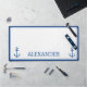 Ce tapis de bureau minimaliste nautique personnalisé dispose d'ancrages bleu marine d'inspiration côtière sur le blanc. Personnalisez avec votre choix de nom ou de texte spécial.