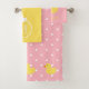 Un joli ensemble de serviettes avec un arrière - plan rose et des pois blancs, trois canards en caoutchouc jaunes le long du bord inférieur, créant un design ludique qui ajoute une pop de couleur à toute salle de bain. Faites une déclaration avec notre serviette personnalisée en ajoutant votre monogramme. Le linge de toilette est muni d'un canard en caoutchouc solitaire et la phrase, Splish Splash. C'est un délicieux rappel de profiter des plaisirs simples de la vie, rendant votre expérience de baignade à la fois amusante et rafraîchissante.