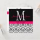 Damask Monogram Faire-part de mariage. Le motif Damask est exclusif à Elke Clarke Designs. Art et design par Elke Clarke ©2010. D'autres designs sont disponibles sur WhiteWhimsicalWeddings.com et WhiteWhimsicalWeddings.blogspot.com. Customisez avec vos noms monogrammes et couleurs mariages. Ajoutez toutes vos informations de mariage au verso de la carte en utilisant les invites de menu faciles à utiliser de Zazzle.