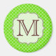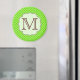 Lime Green Quarterfoil Lattice Trimestre Foil Monogramme Tissu personnalisé initial Motif Aimant de cuisine