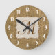 Burlap Pays Dentelle Appliquée Tissu Rustique Imprimer Motif Monogramme Mur Initiale Horloge Personnalisée