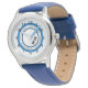 Personnalisez la couleur arrière - plan du visage, le style bracelet ou le style bezel sur la montre à thème de natation unique de cet enfant avec des initiales modifiables. Le design est un graphique circulaire au centre en bleu et noir et blanc. Il suffit de modifier les lettres dans l'éditeur Zazzle facile. Beaucoup d'autres options de style disponibles à choisir de pour customiser plus loin pour en faire un grand cadeau personnel pour un enfant.