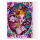 I alphabet lettre design initial Whimsical vibrant et la peinture artistique avec confetti coloré..Amour mythique entre Arlequin et Columbine, peinture acrylique inspirée des masques de plume vénitienne et Commedia dell'arte - Venise. Couleurs vives violet rose jaune vert.