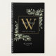 Planificateur de monogramme de verdure de aquarelle noire et dorée élégant moderne avec initiale de monogramme dorée. Conçu par Thisisnotme©