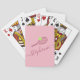 Thème de tennis rose personnalisé jouant aux cartes avec une jolie simple raquette de tennis graphique et nom ou texte personnalisé dans un monogramme féminin girly et joli script moderne police. N'importe quelle joueuse de tennis pour filles ou femmes apprécierait le look élégant de ce cadeau de tennis moderne et utile minime.
