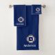 Un design nautique avec une image de sauveteur avec un monogramme et le nom de votre choix sur un arrière - plan bleu marine.