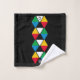 Ajoutez un style audacieux et éclatant à votre décor de salle de bain ou de toilette avec ce kit de serviettes de bain monogramme moderne et coloré. Le design montre une série de triangles géométriques dans un thème de couleur célèbre de bleu, jaune, noir, vert, rouge plus blanc, contre un riche arrière - plan noir. Aux deux extrémités, il y a un MONOGRAM PERSONNALISABLE, que vous pouvez personnaliser avec votre propre initiale. Choisissez parmi une large sélection de cadeaux assortis conçus par Berean Designs.