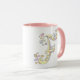 Capital à main décorative Monogram F mug. Joli design griffé dessiné à la main avec coeurs et fleurs. © Unique art et design typographique par Sarah Trett. www.sarahtrett.com pour www.mylittleeden.com sur zazzle