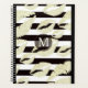 Belle et glamour pour elle, cette planificatrice présente un motif d'images de lèvres brillantes d'or clair sur un arrière - plan rayé noir et blanc. Votre monogramme est au centre en or clair, placé sur une bannière en cercle noir qui est également doublée en or fin. Le dos du planificateur a le même motif sans la bannière ou le monogramme.