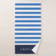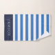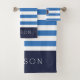 Cette serviette de bain personnalisée sur commande dispose d'un motif à rayures horizontales préppy en bleu marine, blanc et bleu. Personnalisez-le avec votre nom monographique et votre texte initial ou autre texte personnalisé. Utilisez les outils de conception pour choisir des couleurs arrière - plans, modifier les polices de texte et les couleurs ou télécharger vos propres photos pour créer un ensemble personnalisé unique de serviettes de bain pour correspondre à n'importe quel décor de salle de bain. L'ensemble comprend une serviette de bain de coordination, serviette et linge de toilette ou choisir des tailles de serviettes individuelles selon les besoins.