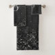 Personnalisez facilement ce design élégant et tendance de serviettes de bain avec une jolie parties scintillant brillante noire sur un arrière - plan métallique brossé noir.