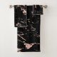 Rose moderne en marbre noir or Paillote Monogramme Serviettes de bain avec rose tendance or/rose sur marbre noir et votre monogramme personnalisé. Parfait pour votre esthétique de luxe.