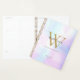 Monogramme or moderne et élégant nom 2023 planner avec holographique, dégradé arc-en-ciel, iridescente, arrière - plan perle. Conçu par Thisisnotme©