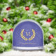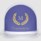 Monogramme doré élégant et couronne de laurier sur boule à neige bleue. Nom et texte personnalisables au verso. Idéal pour les remises de diplômes, les enseignants, les nouveaux emplois, les promotions, les anniversaires et plus encore.