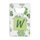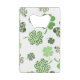 Un joli ouvre-bouteille de carte de crédit présente des trèfles verts amusants et colorés sur un arrière - plan blanc. Dans le centre est un endroit pour insérer votre monogramme initial. Oeuvre créée par : AMBillustrations http://www.etsy.com/shop/AMBillustrations/