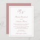 Faire-part de mariage budget de style traditionnel avec un design simple et classique avec vos deux monogrammes initiaux et vos noms dans une calligraphie élégante à l'intérieur d'une mince bordure. Tous les éléments de conception sont en rose rose poussiéreux sur un arrière - plan blanc et peuvent être changés dans l'outil d'édition de conception. Ce design élégant est parfait pour un mariage formel.
