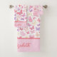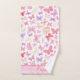 Beaux papillons roses, violets et jaunes sur cet ensemble de serviettes de bain monogrammées. La belle écriture peut être utilisée pour le prénom ou le nom de famille ou les initiales. Ces ensembles de serviettes font de superbes cadeaux de mariage ou de shower de mariage.