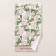 De belles fleurs roses et vertes élégantes sur ce set de serviettes de bain. Le set comprend une serviette à main, une serviette de bain et un gant de toilette. Monogrammez les trois. Fait un excellent cadeau de mariage pour un cadeau de douche nuptiale.