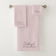 Élégant script noir monogramme personnalisé et nom serif, ensemble de serviettes de bain rose vif. Rafraîchissez votre décor de salle de bain avec un style typographique minimaliste.