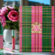 Monogramme élégant rose et vert Plaid