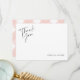 Le dos présente un motif à carreaux gingham rose saumon. Le devant présente une police de style manuscrit avec le mot 'merci' et le nom de votre choix en bas de la carte qui peut être personnalisé selon le texte que vous souhaitez.