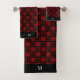 Monogramme, cercles abstraits noirs et lignes géométriques sur noir et rouge.